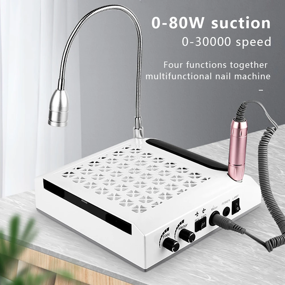 This 4-in-1 nail machine is made of high-quality ABS material, which is strong and durable. It is equipped with an LED light source to provide good lighting for your workstation. The filter can absorb nail dust, which ensures the purity of the operating space while carefully caring for the respiratory health of nail technicians and customers. With it, you can enjoy the fun of DIY and have beautiful nails at the same time.